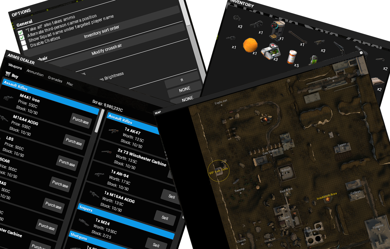 1. This server is a semi-hardcore survival experience. The Wasteland is unforgiving and you will face many trials that will challenge your abilities. You can go it alone or with allies by forming a squad. This feature can be easily accessed by typing /squad in chat. To face the Wasteland together, you and your allies can queue to leave the safezone together with /squadleave.